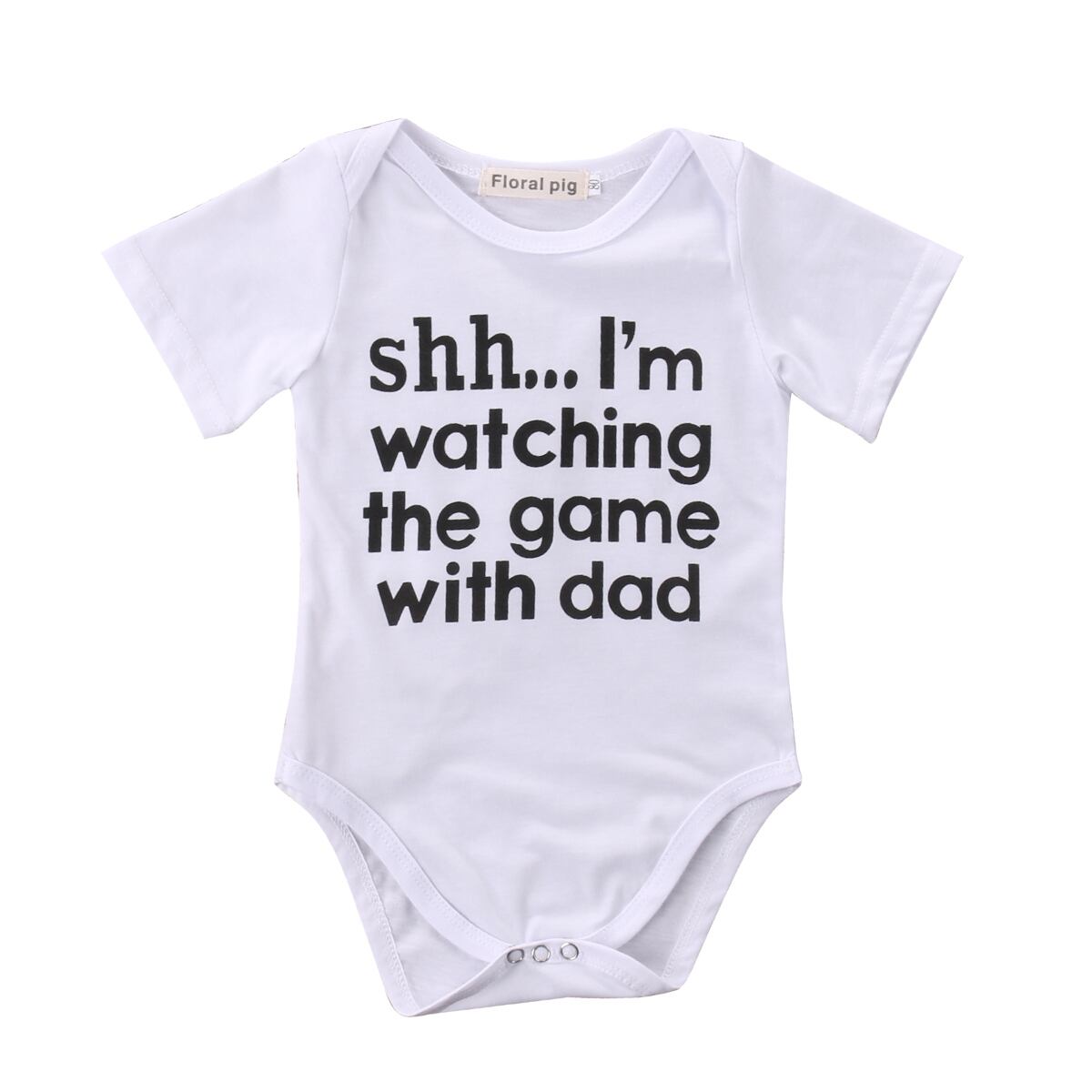 新作 幼児生まれの男の子女の子ロンパース綿半袖かわいい白い文字プリントロンパースジャンプスーツ男の子服