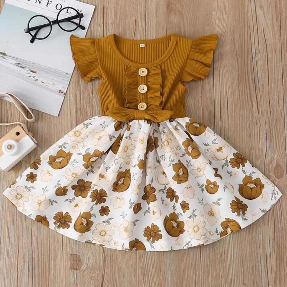 新作 2021年の女の子の夏のドレスフライングスリーブ編み花柄のドレス女の子Vestidos子供Insスタイル