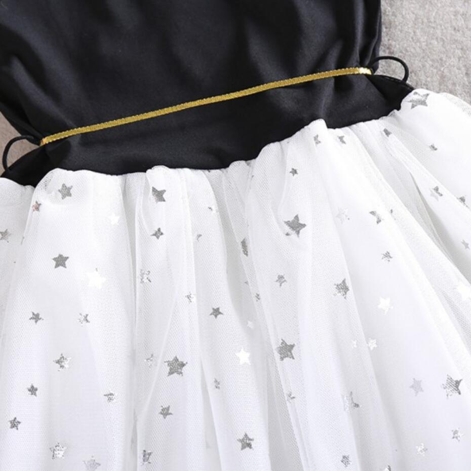 新作 夏のキッズガールドレスゴールドスターベビー服かわいいコットンボイルパーティー子供ノースリーブシフォンドレスベルト