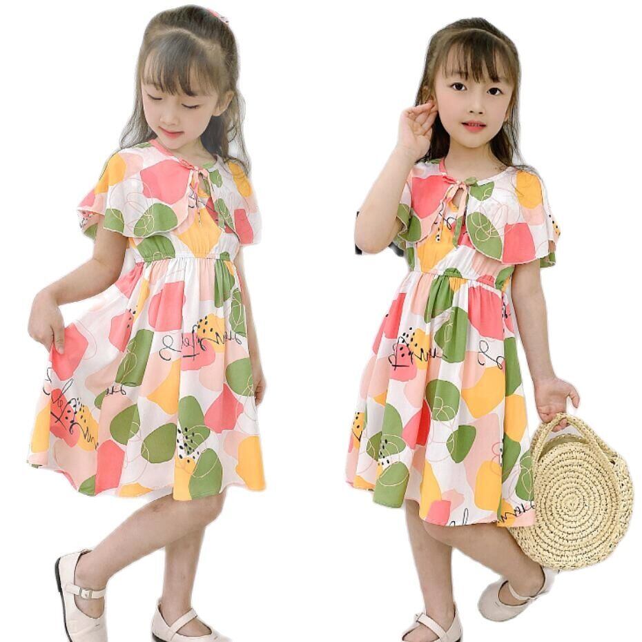 新作 サマービーチシフォンドレス女の子服コットンシルクフローラルヒョウプリント子供誕生日パーティードレスベビーキッズギフト