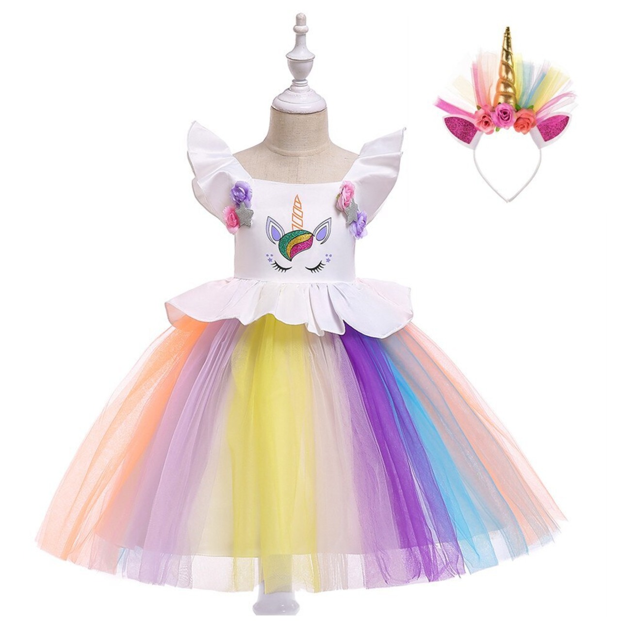 新作 女の赤ちゃんユニコーンツツドレスパステルレインボーガール誕生日パーティードレス子供キッズパーマ