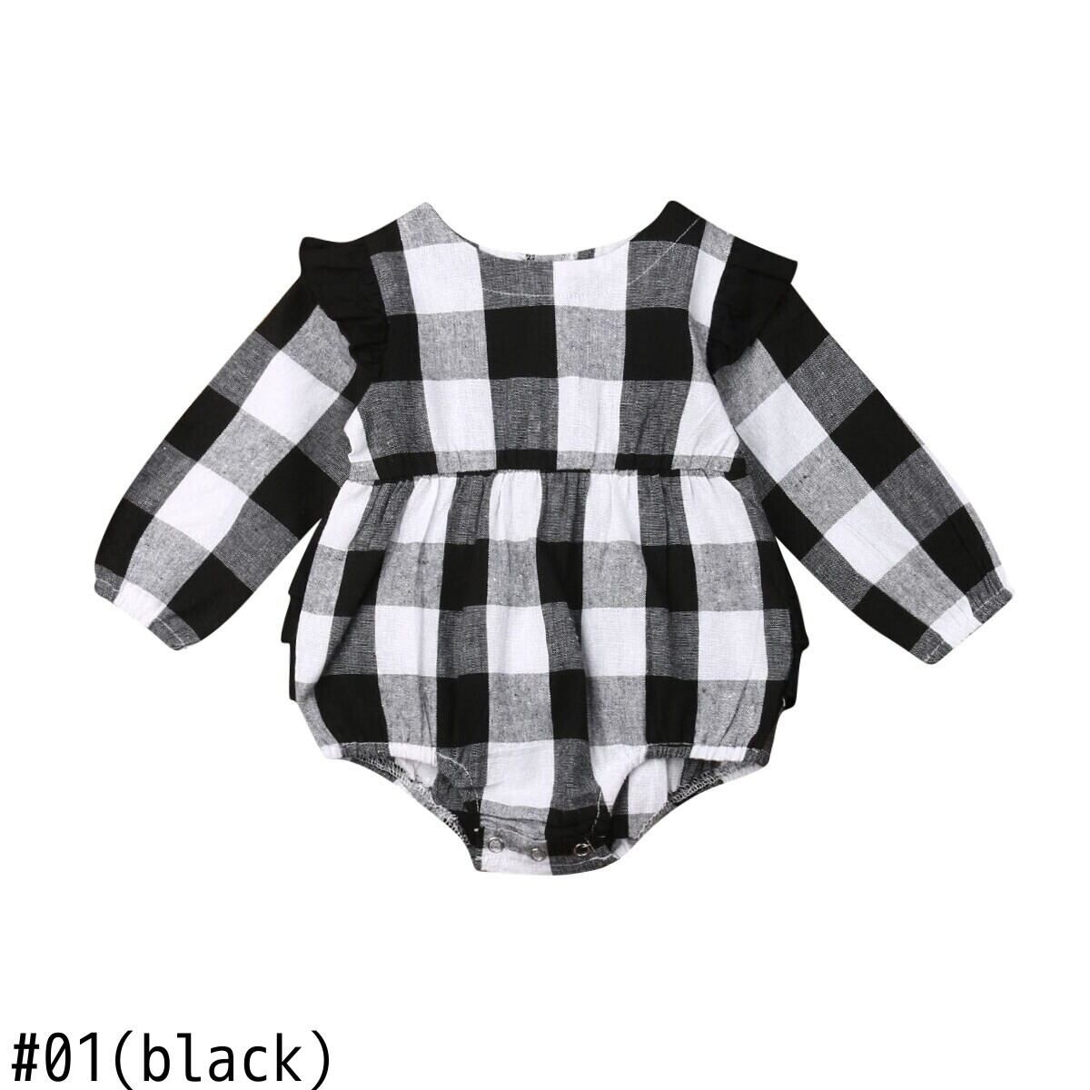 新作 春 秋 冬 0-18M 幼児&生まれたばかりの女の赤ちゃん クリスマスロンパース 赤黒格子縞長袖 フリルジャンプスーツ クリスマス