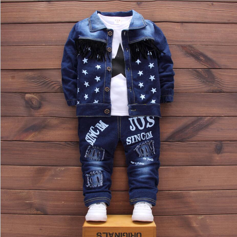 新作 子供春秋冬 ベビーボーイズ&ガールズ洋服セット テルデニムコート+シャツ+ジーンズパンツ3点セット