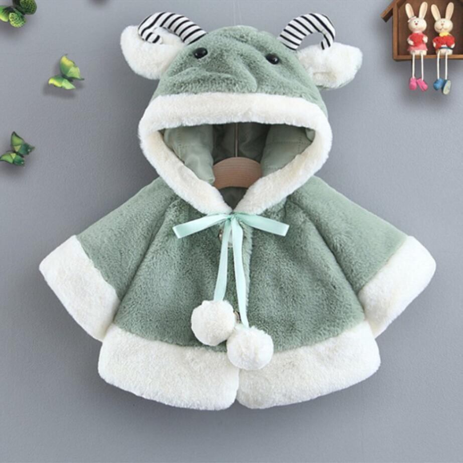 新作 ベビーガールズアウタークリスマスジャケットキッズ服幼児フード付きコート暖かい子供マントスノースーツ幼児フェイクファーコート