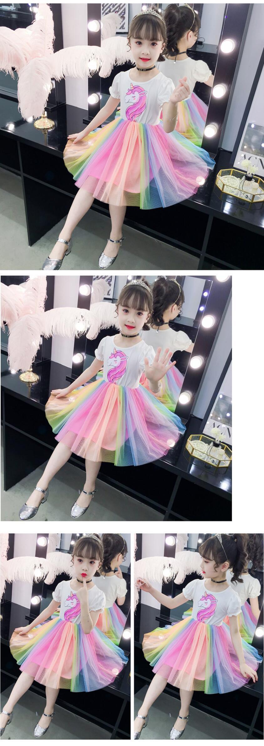 新作 女の子のドレスクリスマスの子供ユニコーンの誕生日パーティーのドレスレインボークラウンの女の子2-8歳