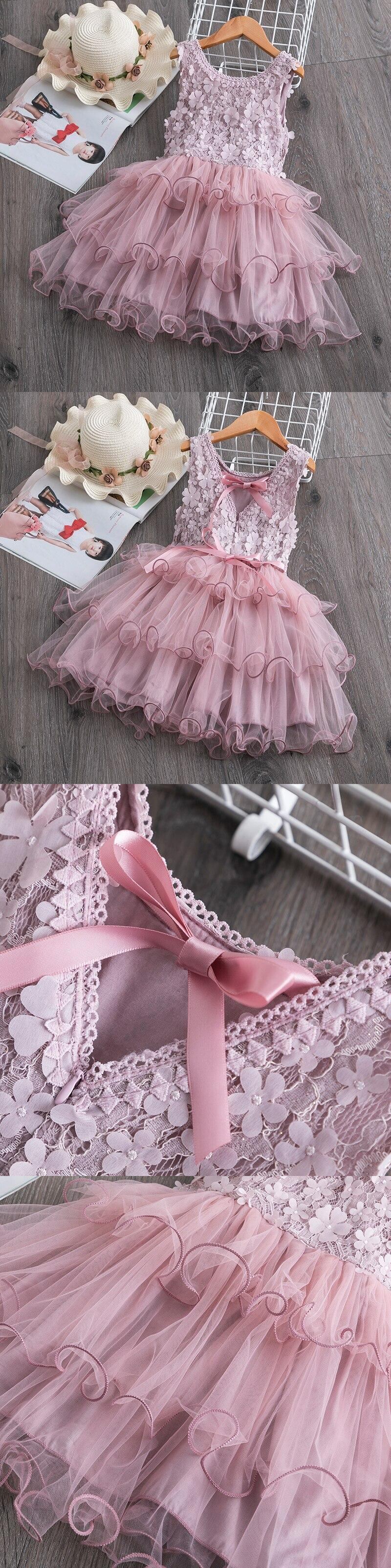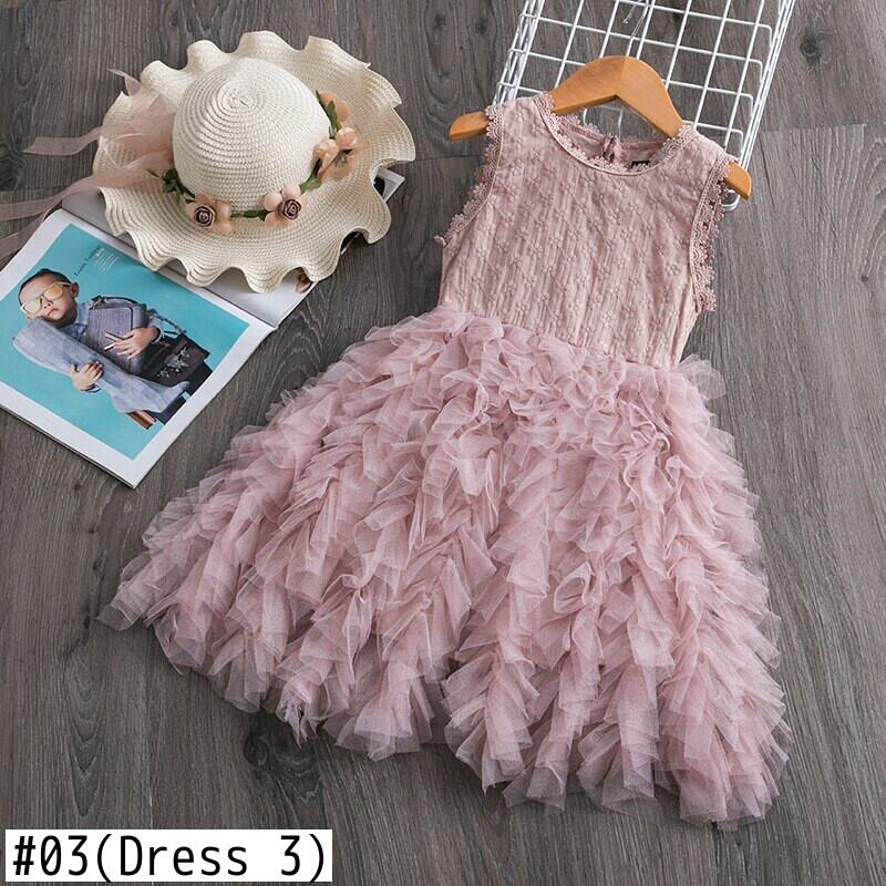 新作 夏のかわいいレースの女の子のドレスキッズガールパーティードレス女の子ノースリーブケーキフリルツツドレス子供服