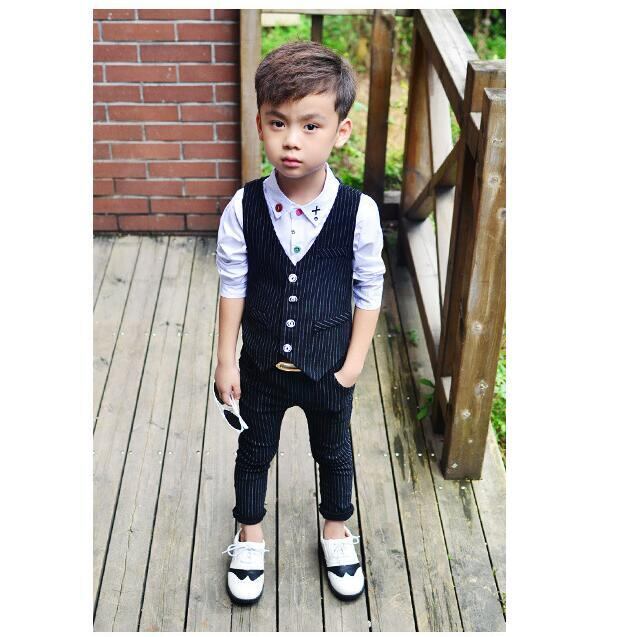 新作 到着秋春男の子服セットラティストップス+パンツビジネススーツ幼児男の子ビジネススーツ2pcs