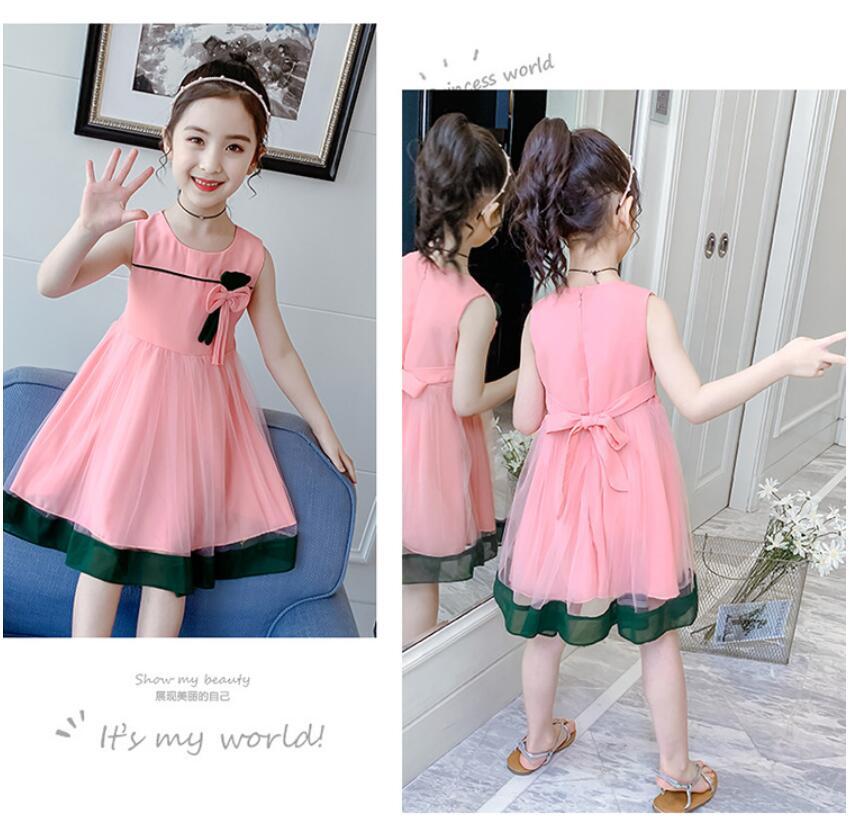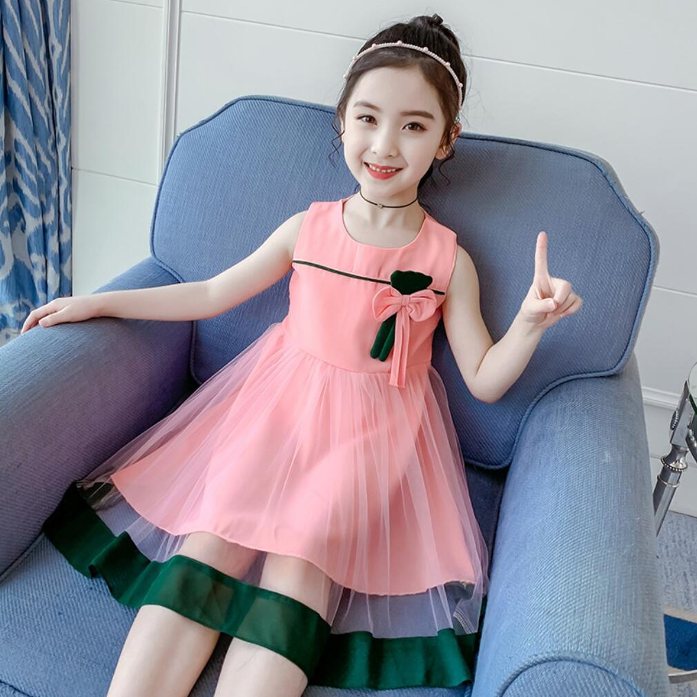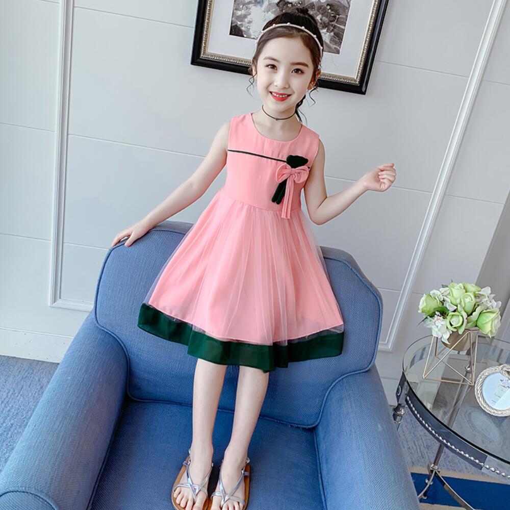 新作 2021年夏の女の子の膝丈のノースリーブドレス12子供用11メッシュ糸Oネックパーティードレス