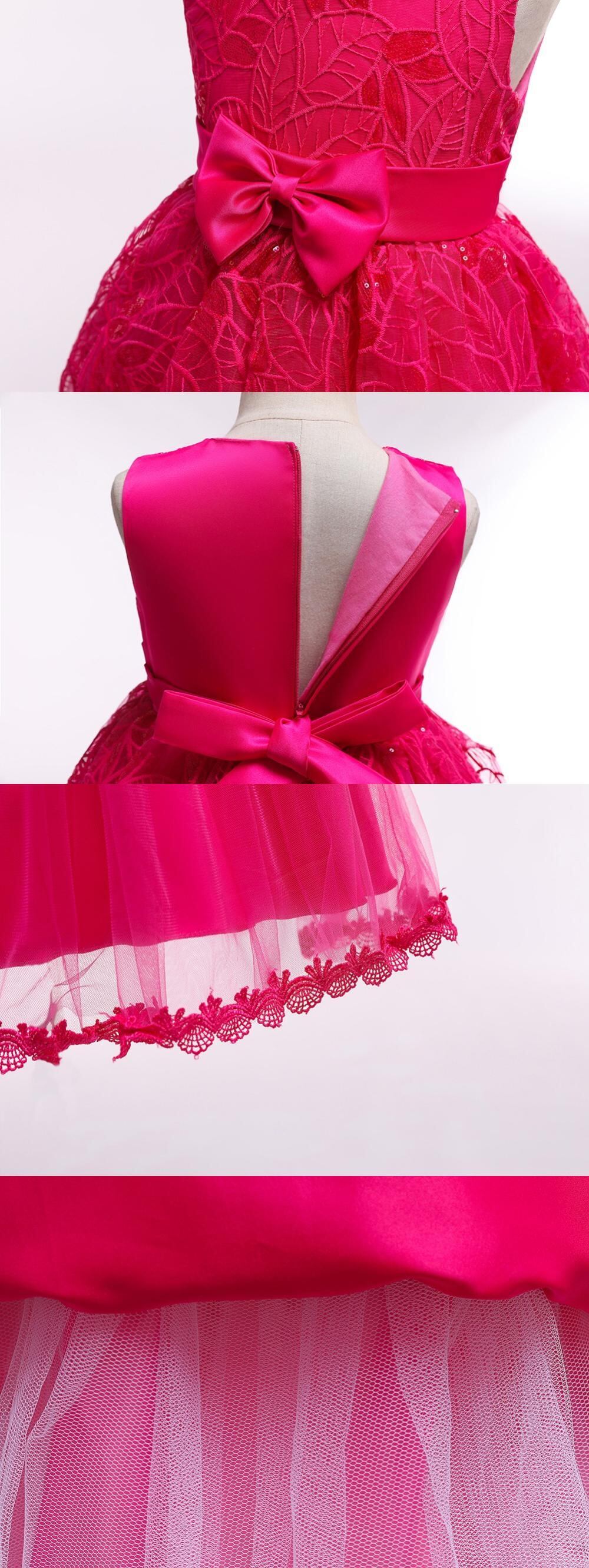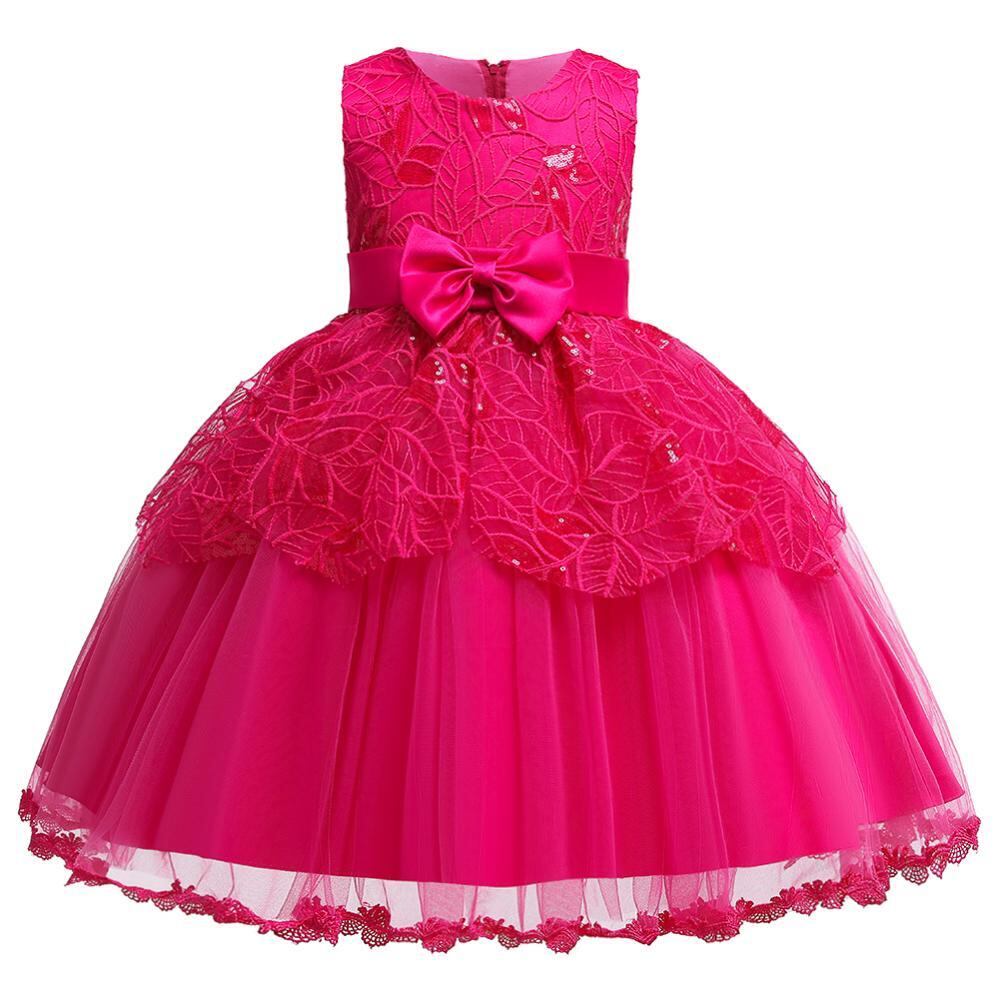 新作 ガールキッズ刺繍ドレスのレッドピンクドレスフラワーガール幼児ドレスVestidoInfantilmalパーティードレス