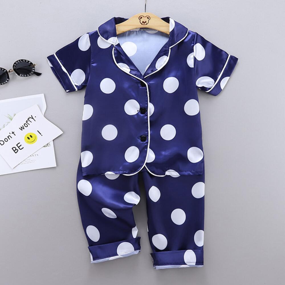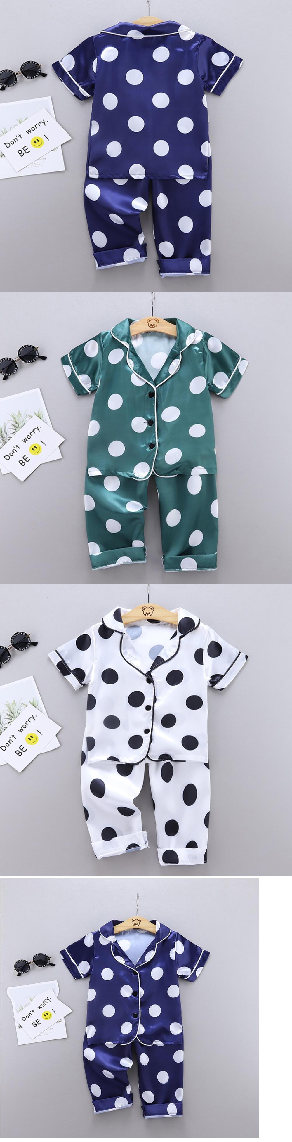 新作 キッズ春夏パジャマアイスシルクスーツドット子供男の子と女の子エアコン薄型パジャマ2PCSセット