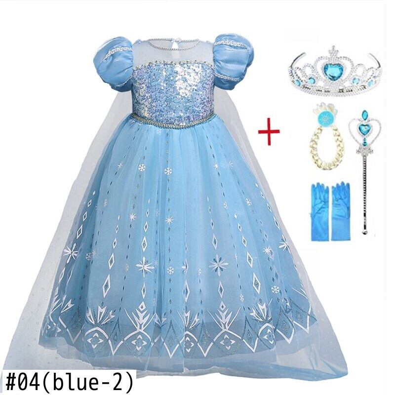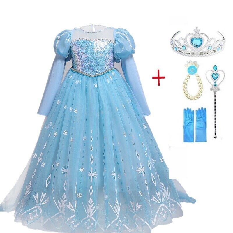 新作 コスプレガールズエルザドレスキッズスノーフレークスパンコールロングドレスパーティーキャニバルキッズ4-10歳