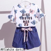 新作 女の子服セットサマーフラワーシャツ+ジーンズショートパンツ2PCS女の子セット女の子ティーン子供服810 1214年