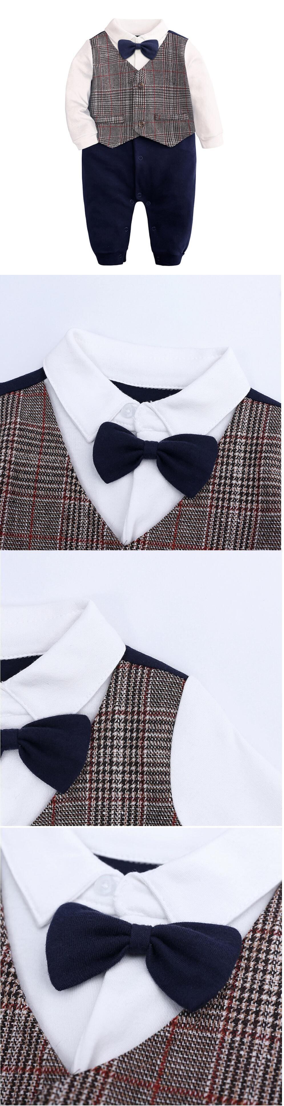 新作 生まれた幼児2019秋ベビーロンパース紳士格子縞の男の子の誕生日スーツジャンプスーツベビー服衣装0-2年