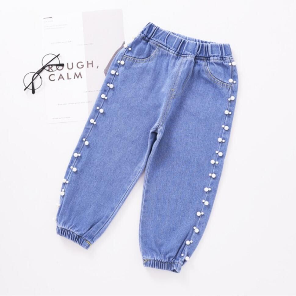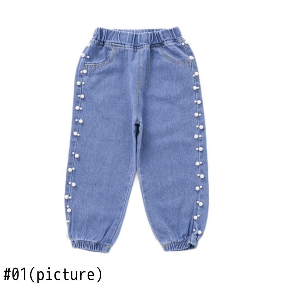 新作 キッズガールズジーンズ春ベビージーンズパールカジュアルベルボトムパンツガールキッズパンツカウボーイパンツ2020年秋