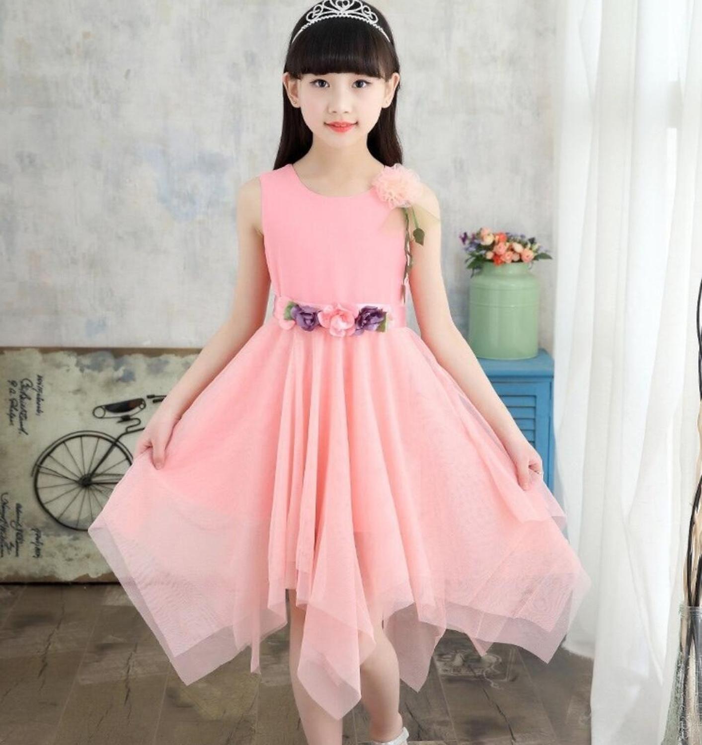 新作 3〜12歳の子供たち夏の花の女の子のドレスシフォンドレス女の子の子供服ドットミニー