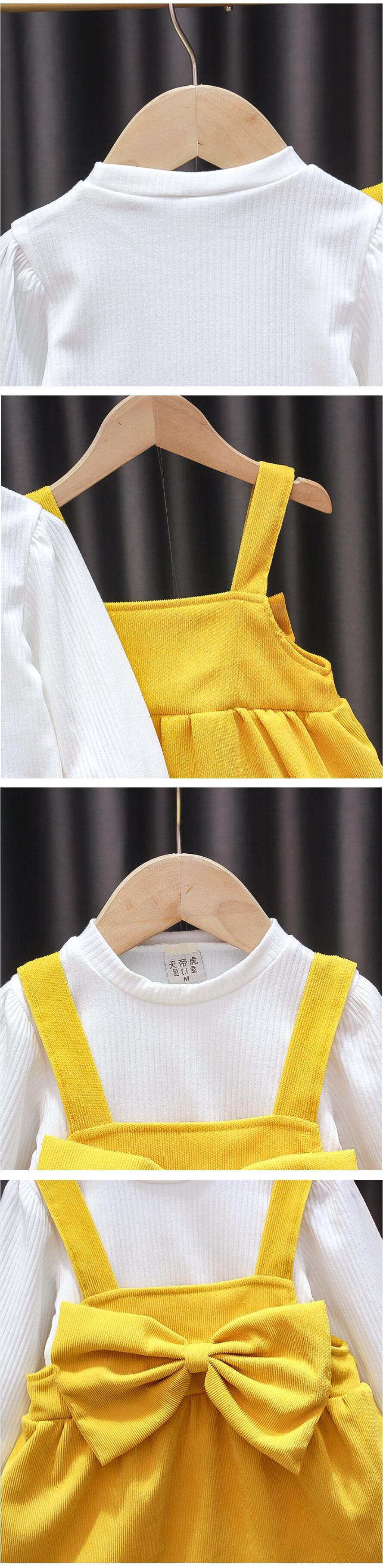 新作 子供の年のビッグボウドレスフルスリーブスーツ女の子秋の服白いTシャツドレス赤ちゃん甘いVestidos2-8Y