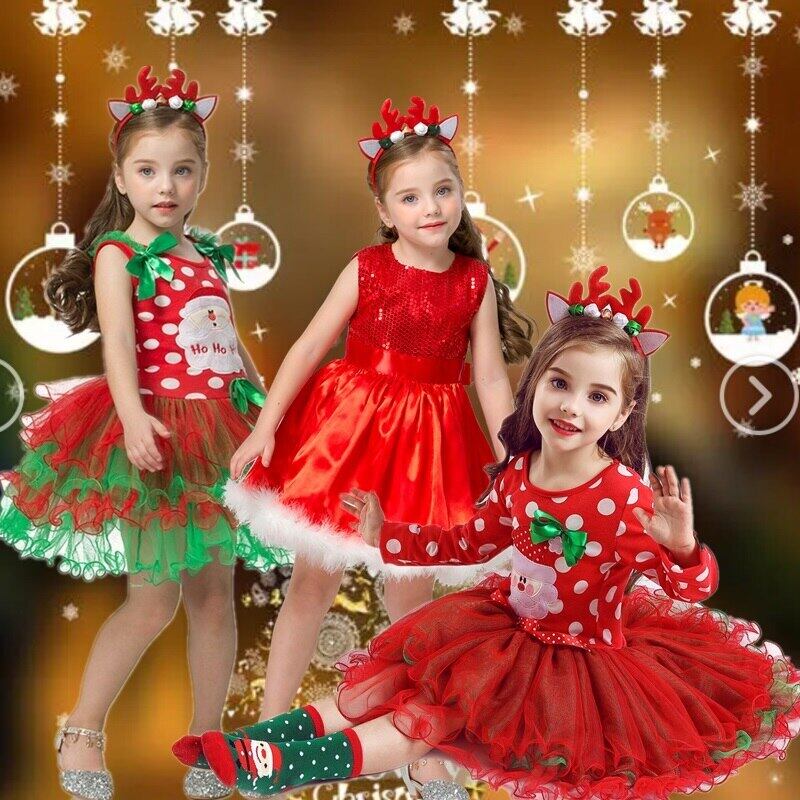 新作 ガールズポルカドットスノーマンクリスマスドレス幼児クリスマスロンパースサンタケーキレイヤードレスキッズイヤーコスプレ