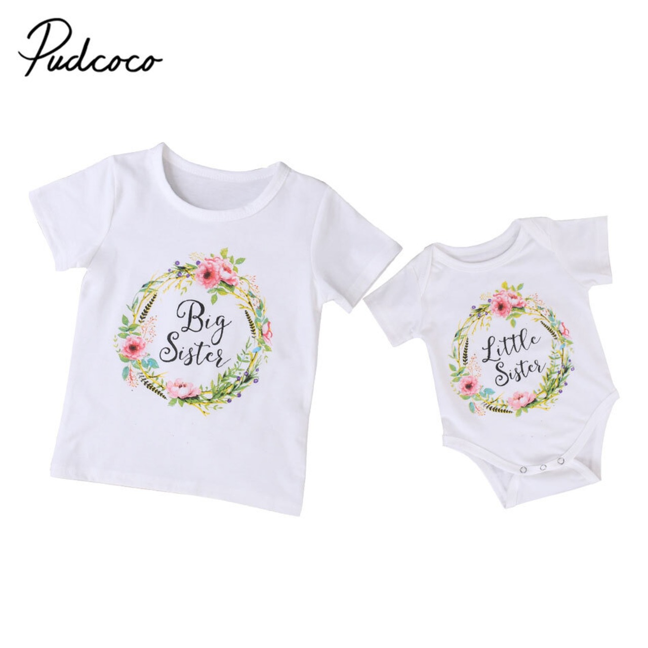 新作 かわいい女の赤ちゃんリトルビッグシスターマッチ服ホット幼児フローラルジャンプスーツキッズプリント衣装