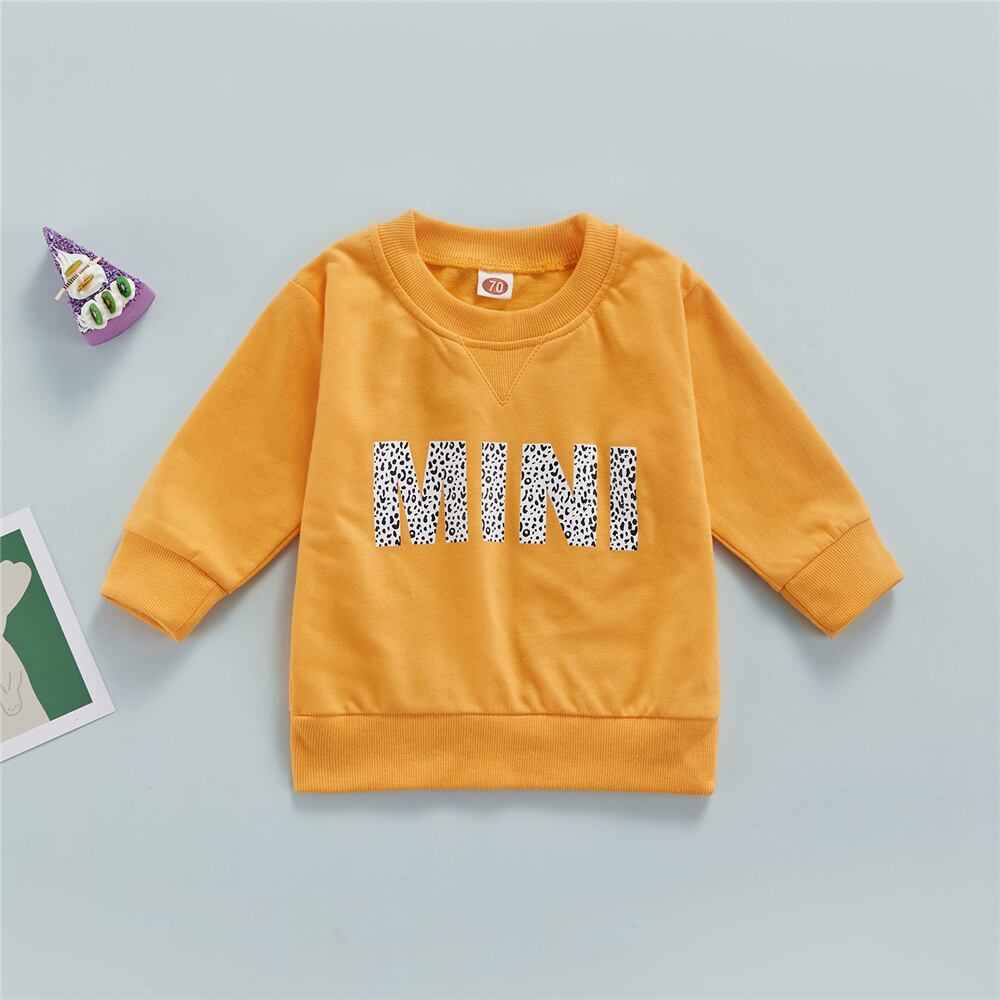 新作 ベビーキッズガールズ長袖プルオーバーレターヒョウ柄プルオーバースウェットシャツトップス2021年秋冬
