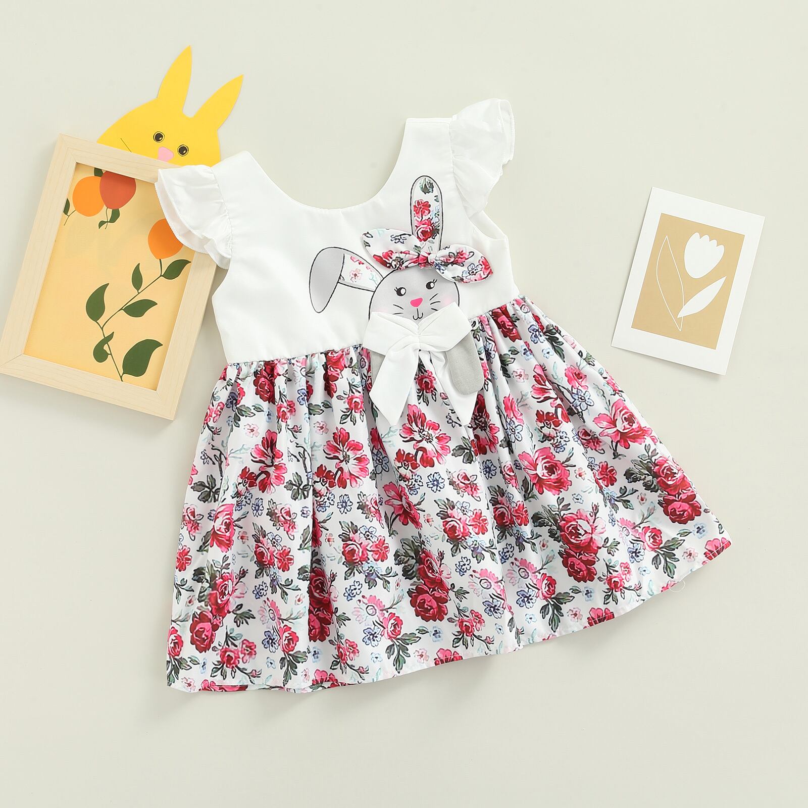 新作 Ma&Baby0-6Yイースター生まれの幼児幼児キッドガールズ漫画バニーフローラルロンパースドレスパーティーD35