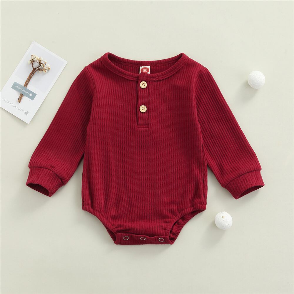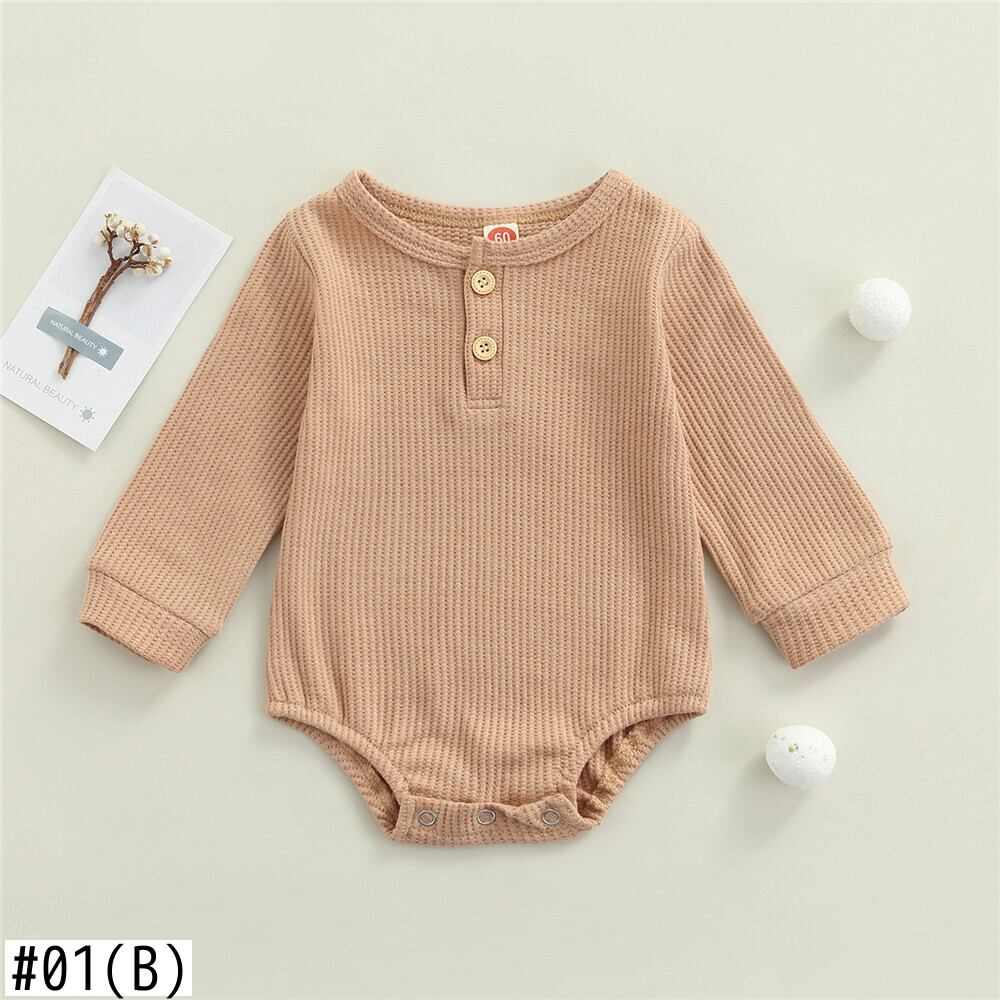 新作 3色から~生まれたばかりの男の子 女の子 長袖ロンパース 幼児 無地ボタンジャンプスーツ ブルーカーキレッド