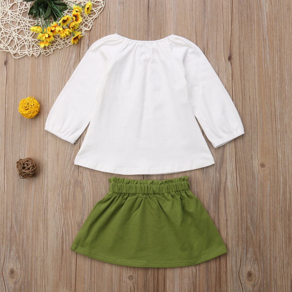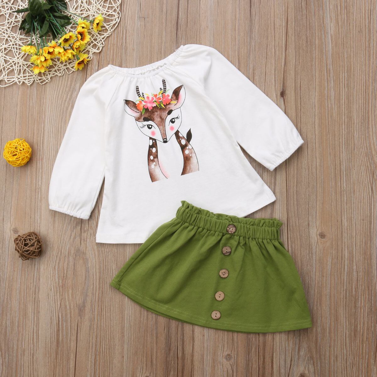 新作 かわいい鹿幼児キッド女の赤ちゃんセットChirstmas子供服白い長袖Tシャツ+緑のスカートOutfistDNOV