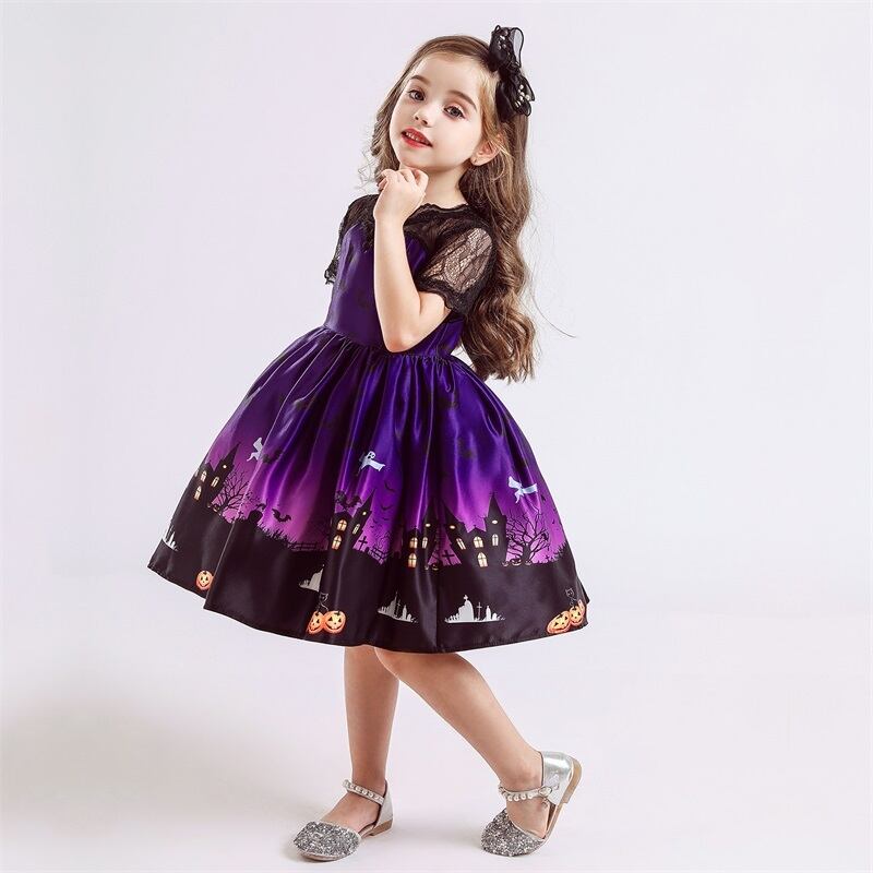 新作 Grislキッズカーニバルコスプレウエディングドレス子供の女の子パンプキンスカルレースコスプレパーティー