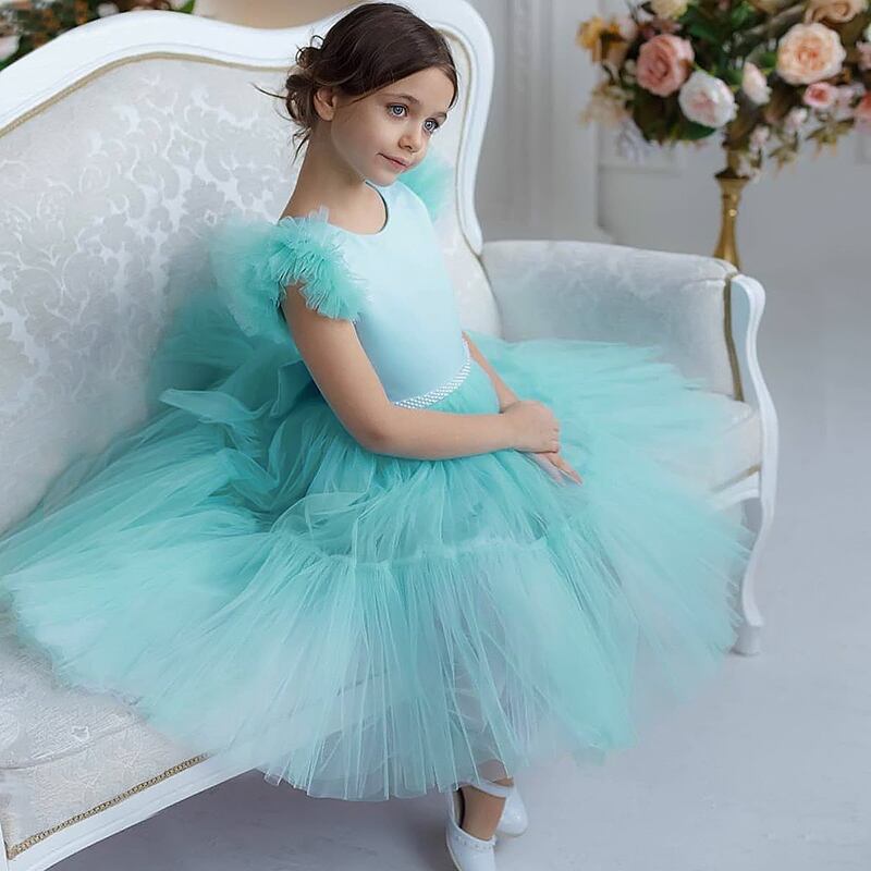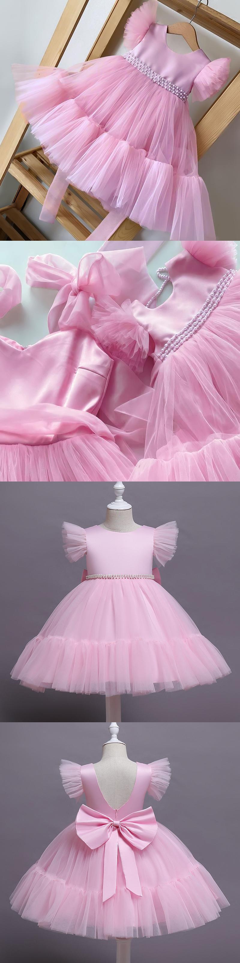 新作 女の子のドレス子供の誕生日パーティーのドレス子供の甘い花嫁介添人の結婚式のメッシュウエディングドレス4-10Y Vestidos
