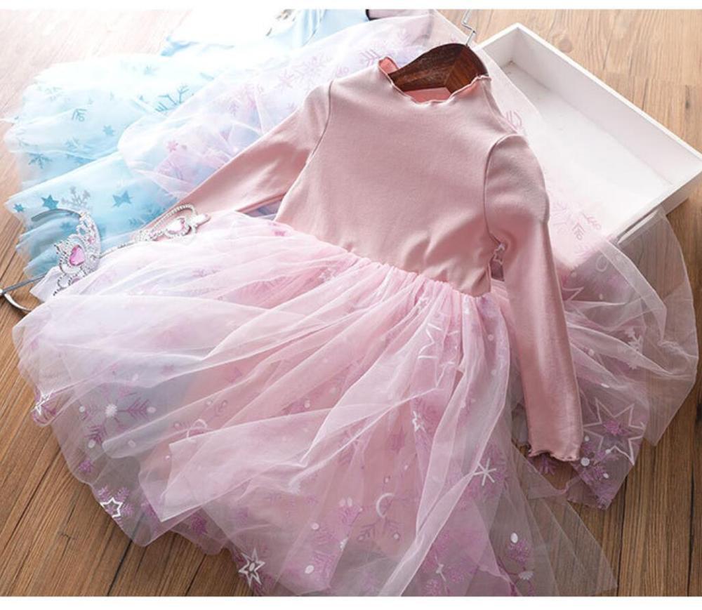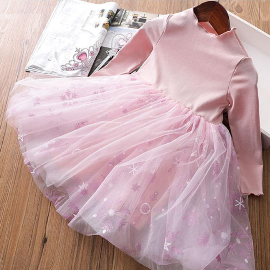 新作 輝く雪の女王は子供たちに服を着せます秋冬の女の赤ちゃんの長袖のドレスの誕生日パーティーVestidoキッズの女の子の服