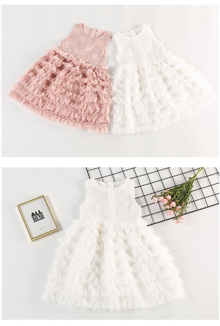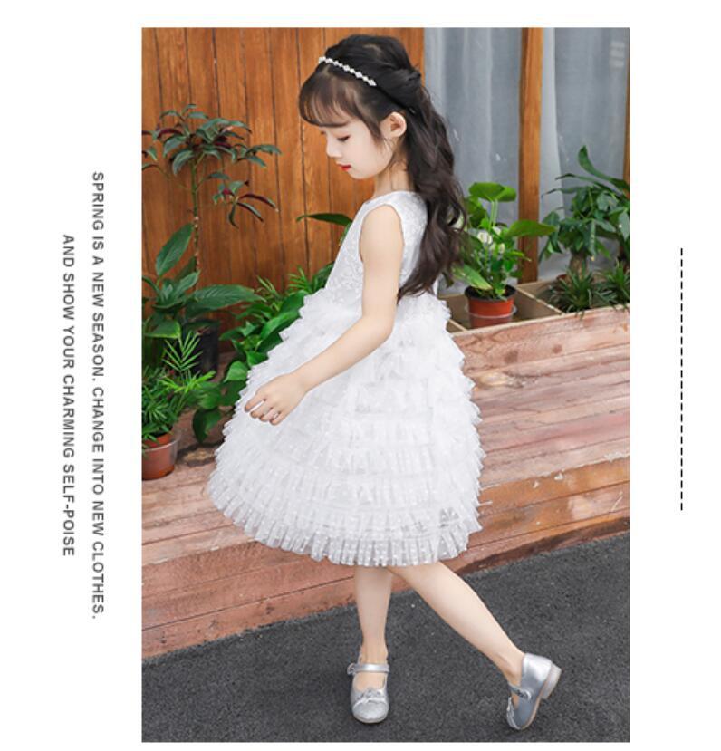 新作 ベビーガールズパーティードレスレースチュールフラワーウェディングドレスファンシーバースデー衣装子供レイヤードs子供服ケーキドレス