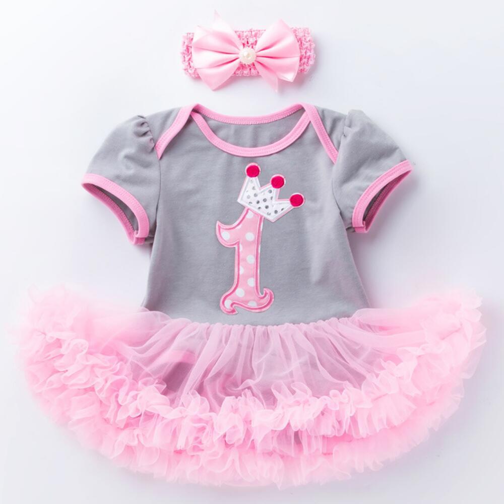 新作 赤ちゃん1歳の誕生日ドレス 幼児の女の子の服 半袖チュチュドレス ロンパースの王冠のヘッドバンド赤ちゃんの服