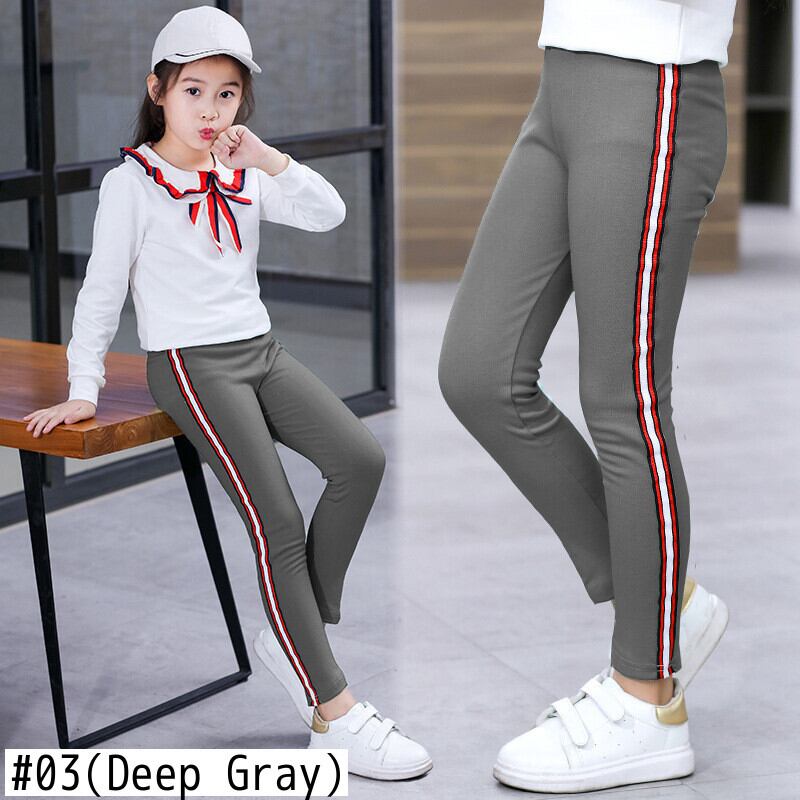 新作 サマーガールズレギンスコットンシンスキニーエラスティックウエストパンツキッズスポーツストライプパンツ子供3-12歳ストレッチパンツ