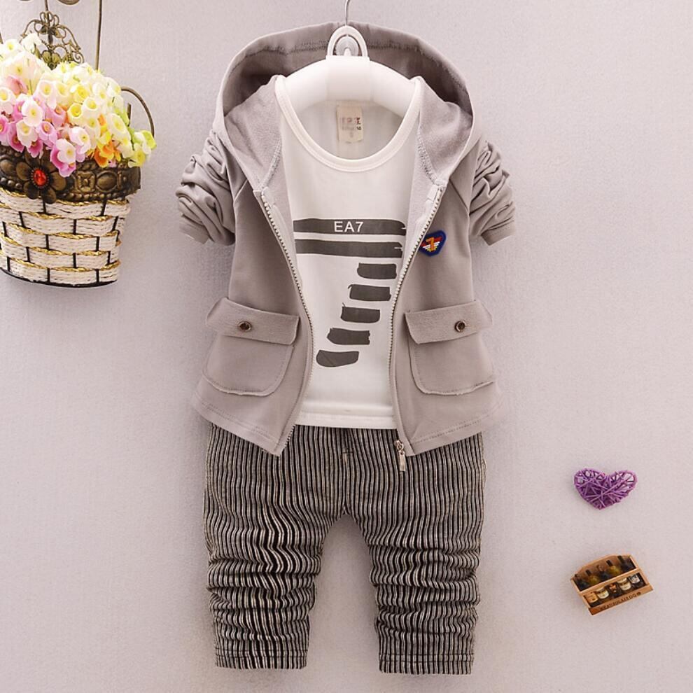 新作 春秋冬 かっこいい! 3点のベビー&ボーイセット 長袖Tシャツ+コート+パンツ 男の子&幼児子供服