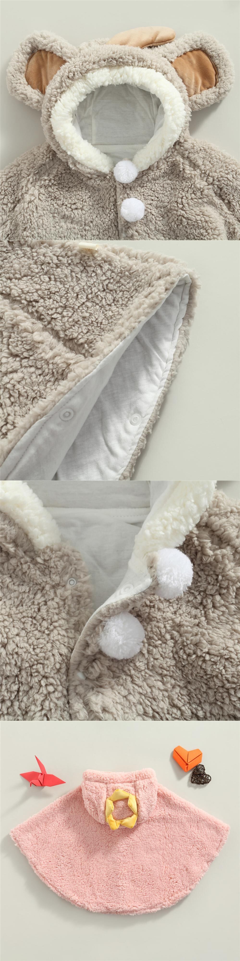 新作 6色ベビーウォームぬいぐるみマントルーズ長袖ボタン漫画動物フリースフード付きコート秋冬キッドガールボーイ