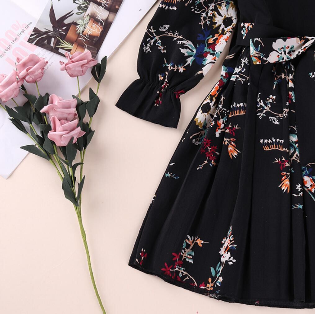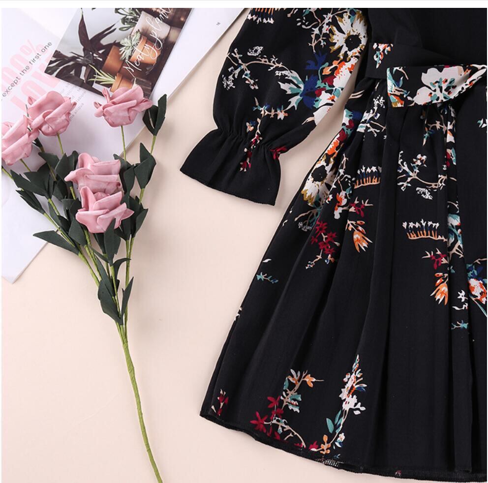 新作 女の子のドレス春秋ベビーフローラル印刷シフォンドレス長袖パーティー幼児子供服2-6歳