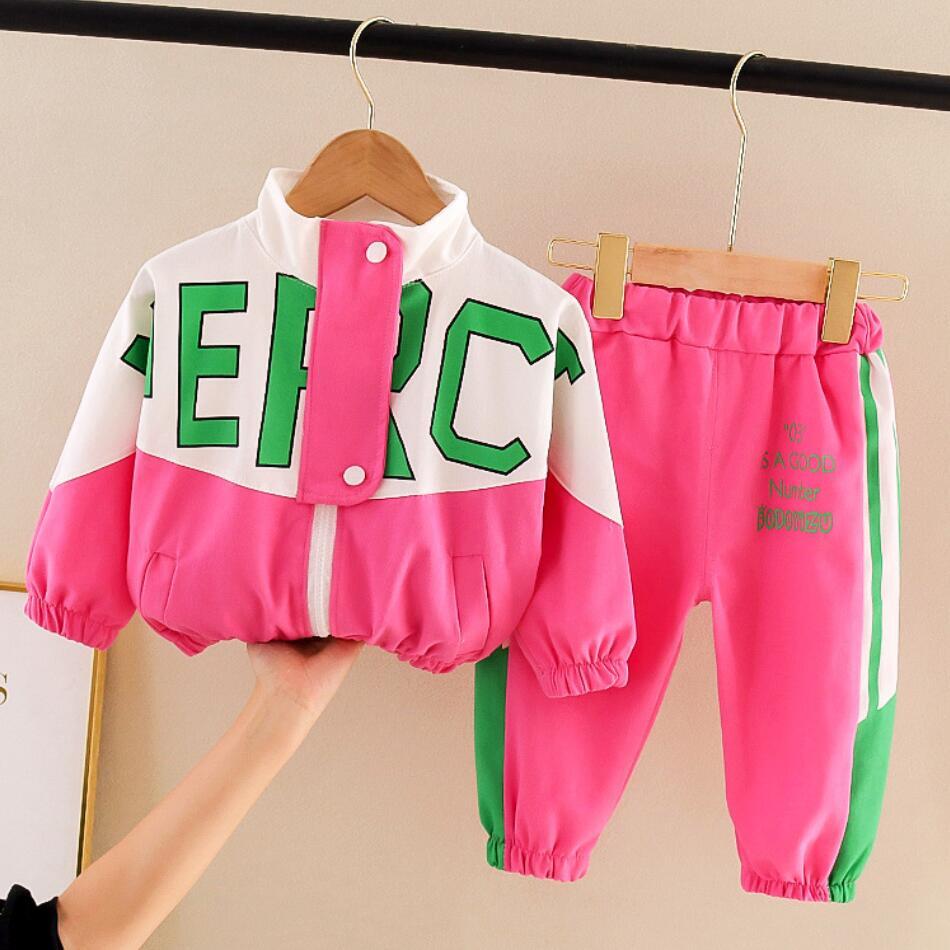 新作 ベビー秋学服ガールズジッパージャケットパンツ2個/セット春の子供スポーツ幼児用トラックスーツ