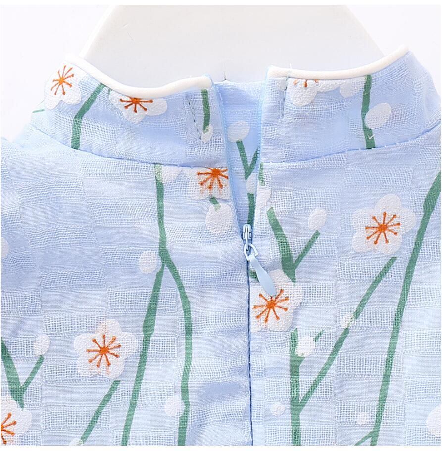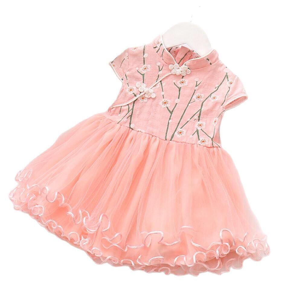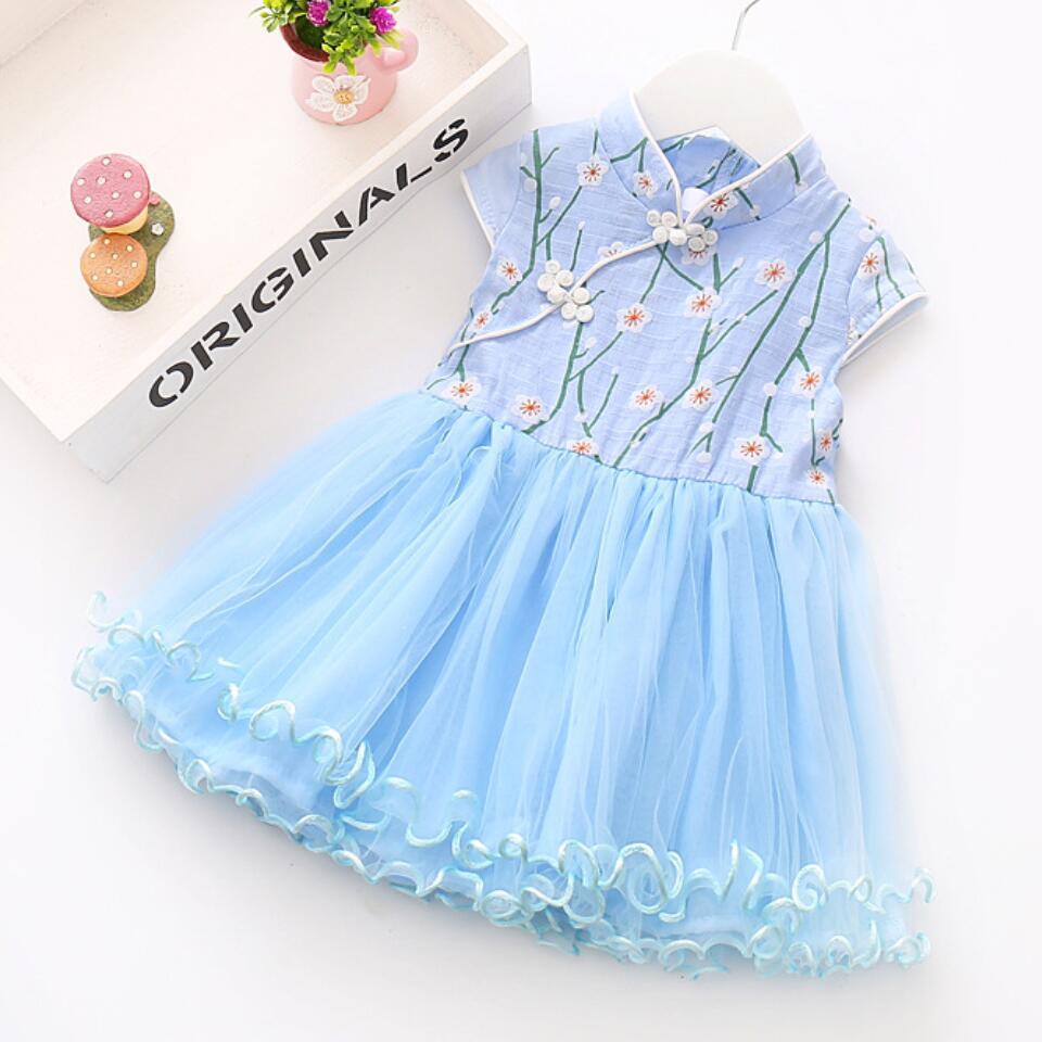 新作 2021年夏の女の子チャイナドレススプライスメッシュドレス子供ソフトコットン生まれの赤ちゃん幼児服子供チュチュドレス
