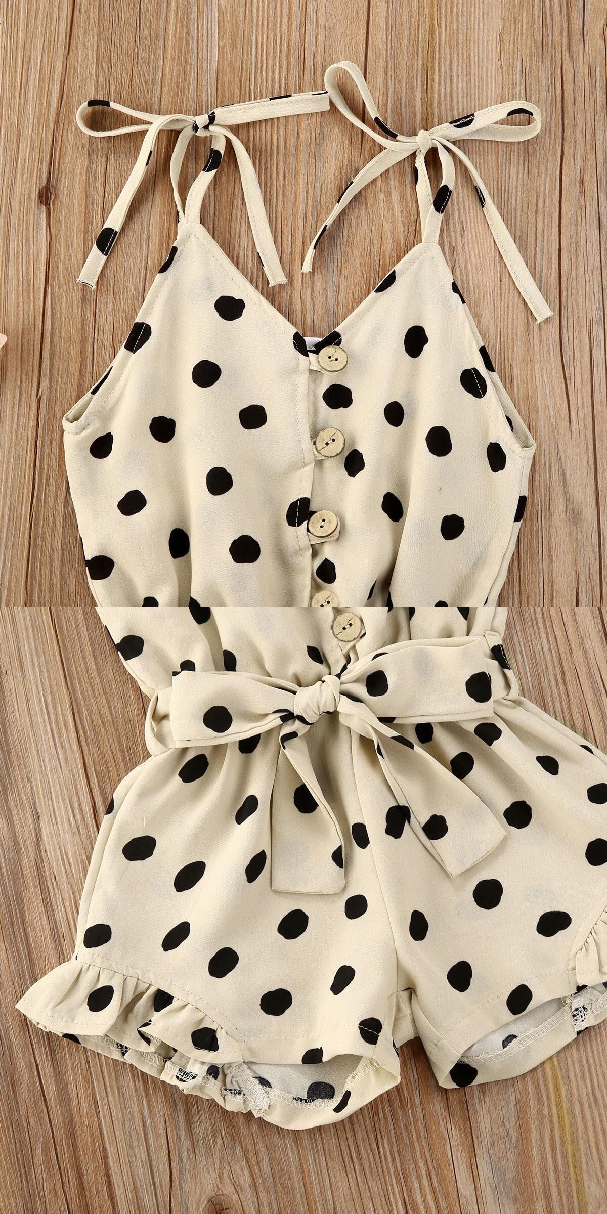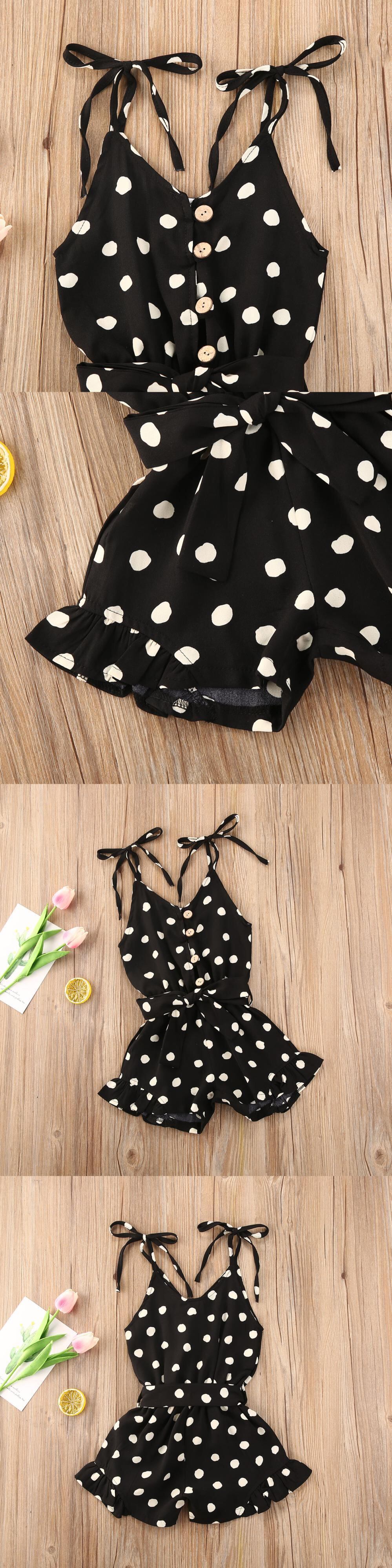 新作 1-6Yサマーインファントベイビーガールズハートプリントロンパースオーバーオール4色ノースリーブボタンジャンプスーツ衣装