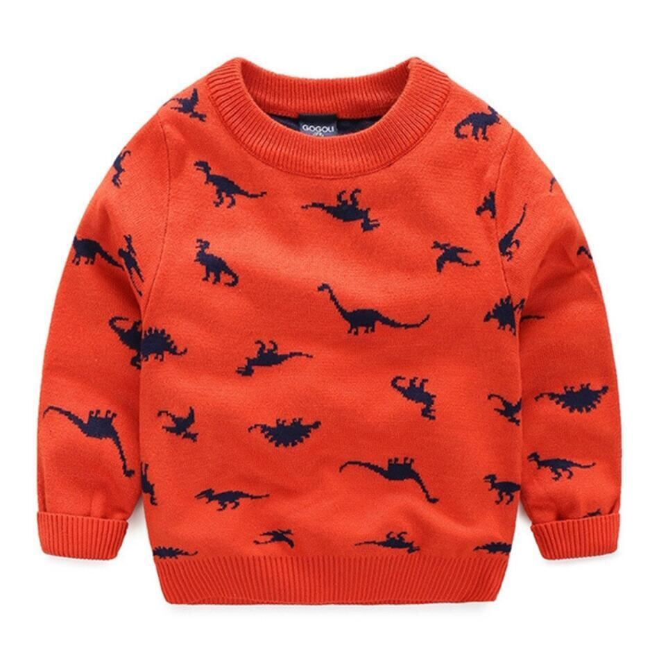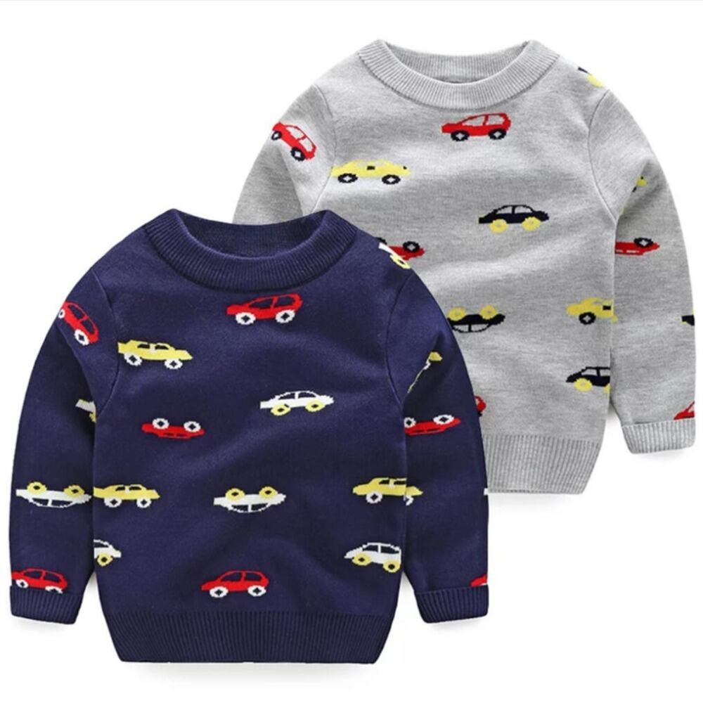 新作 秋の赤ちゃん男の子セーターコート子供編みプルオーバートップス漫画恐竜と車子供セーター長袖