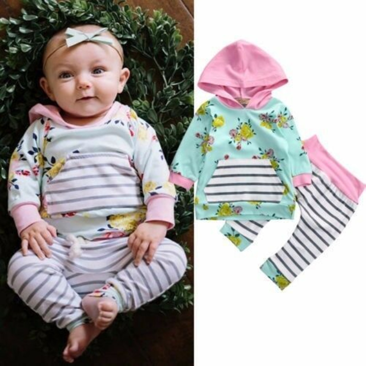 新作 生まれた幼児の赤ちゃんキッドガールフード付きセータートップス+パンツ衣装セット服0-3Y