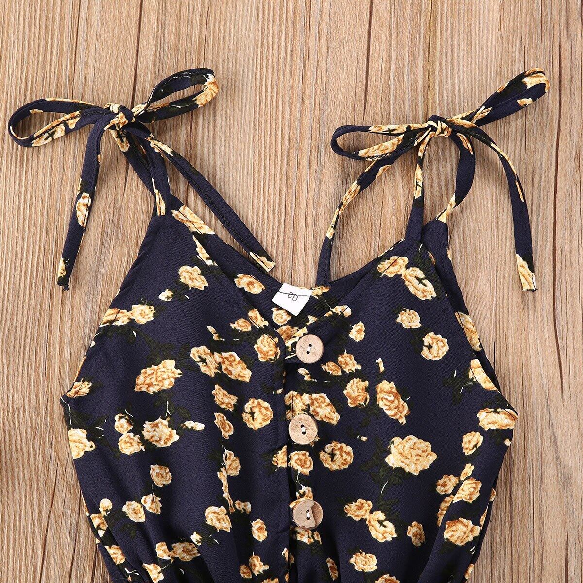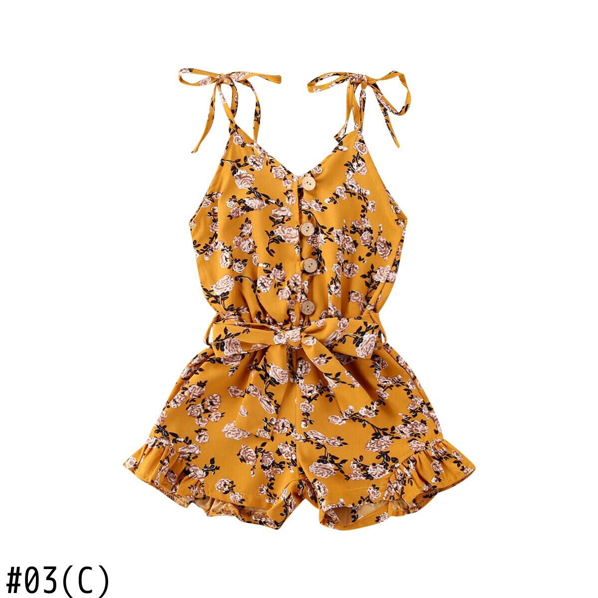 新作 1-6Yサマーインファントベイビーガールズスウィートロンパースオーバーオールフローラルプリントノースリーブシングルブレストシフォンロンパース5色