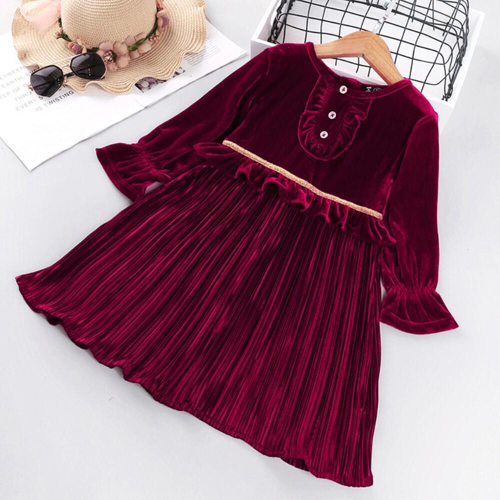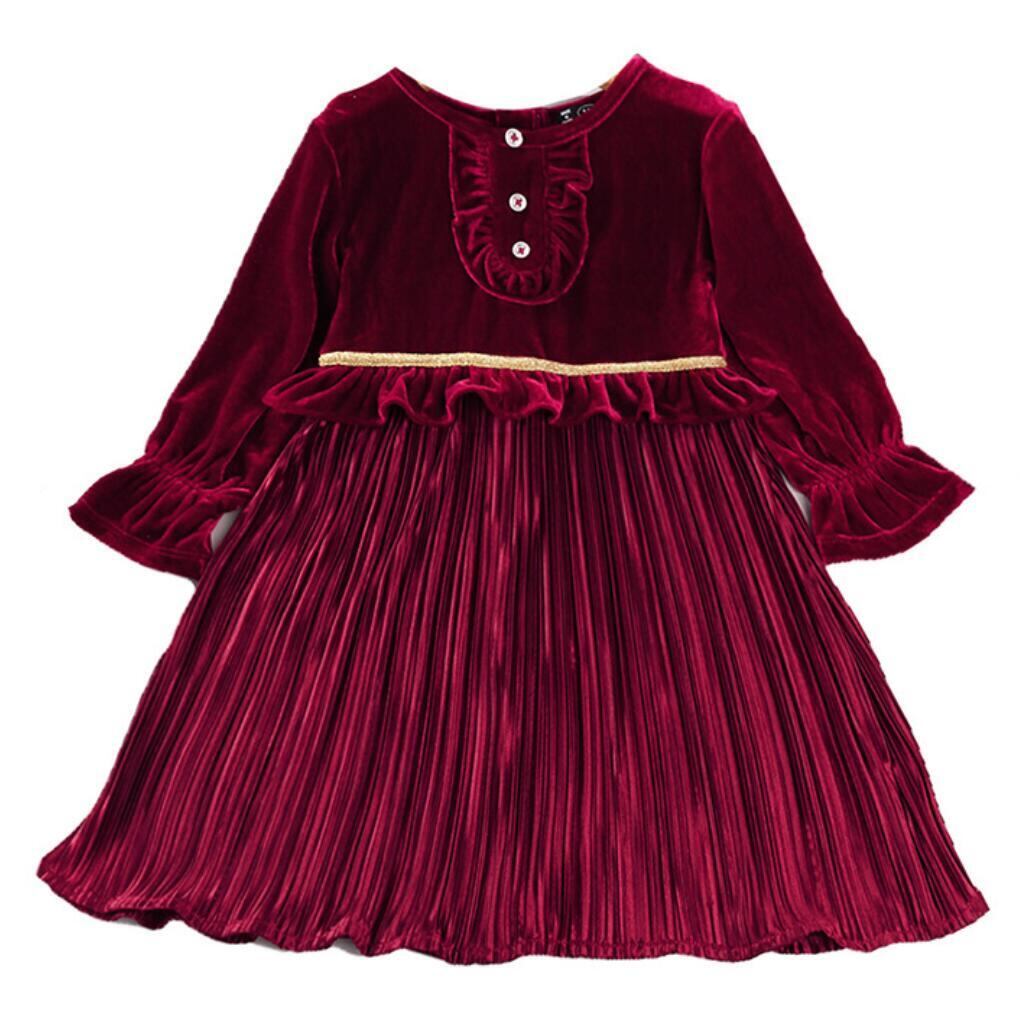 新作 2021年の女の子がベルベットの子供と長袖のスプライスドレスをドレスアップ春の学校のベビードレスVestidos