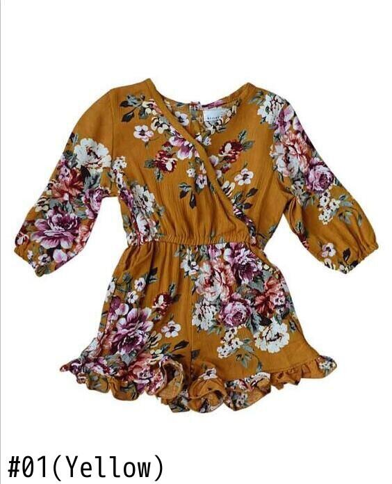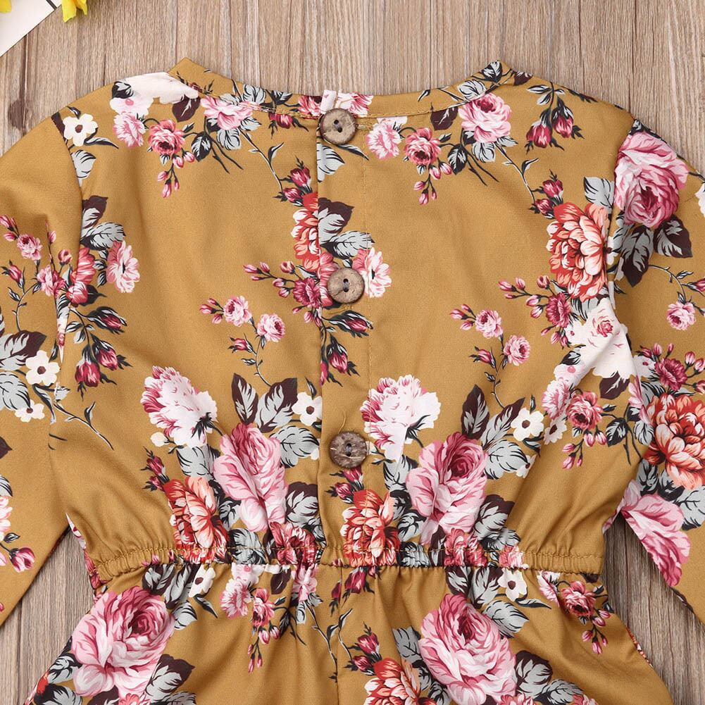 新作 幼児キッズベビーガールVネックフローラル長袖ロンパースジャンプスーツパンツ衣装服1〜3Y