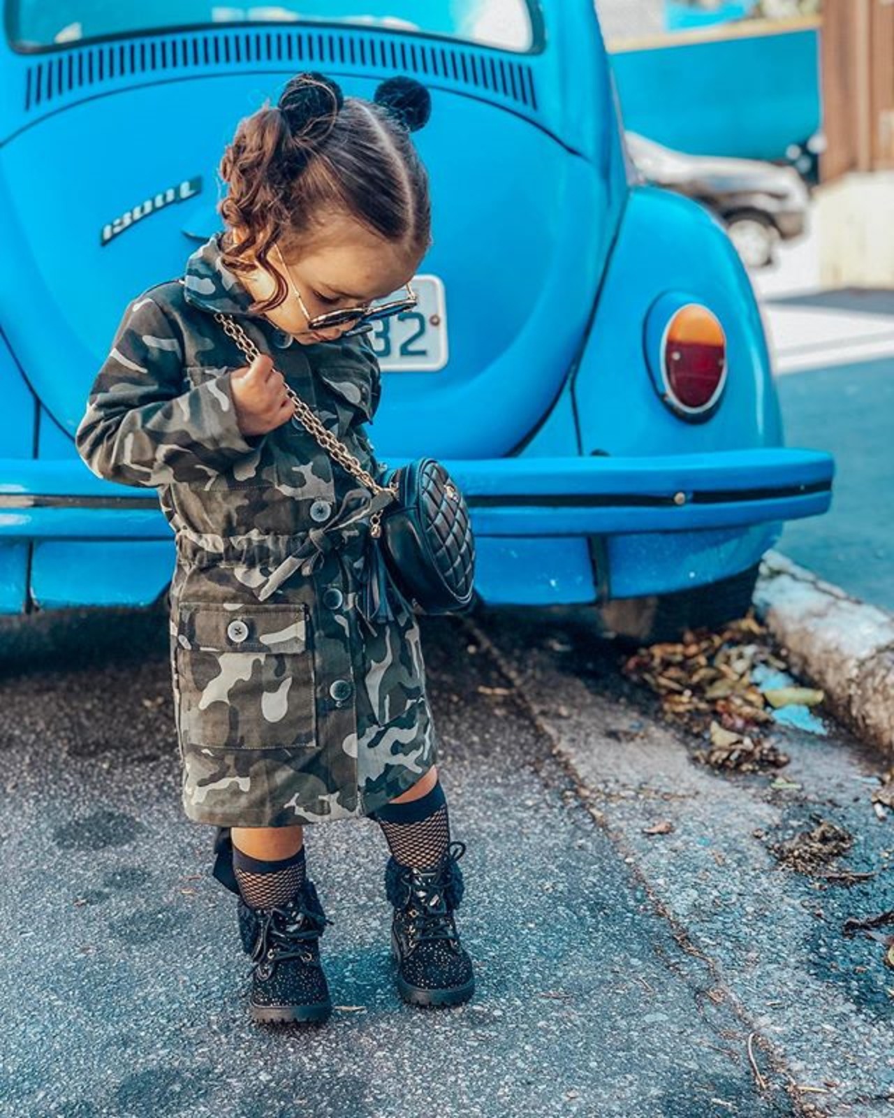新作 Hashion ToddlersGirl長袖トレンチカモフラージュジャケットニーコートアウター1-6Y