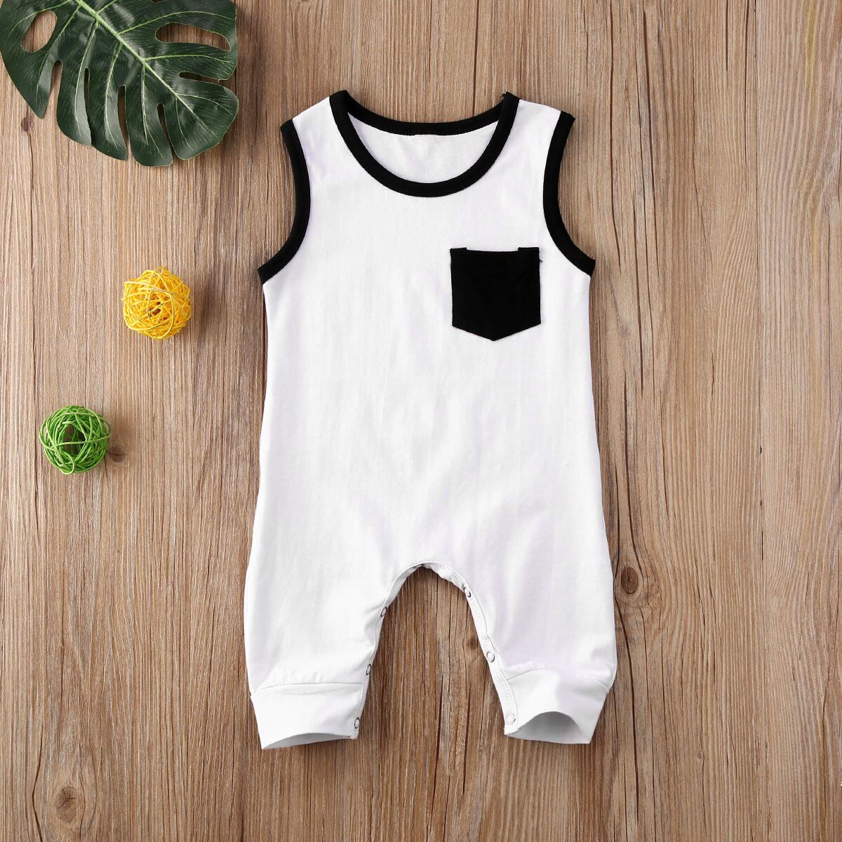新作 生まれた幼児男の子夏ノースリーブロンパースポケットジャンプスーツプレイスーツワンピース服装0-18M