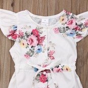 新作 英国カニスベビーガールキッドフライスリーブジャンプスーツフラワー/デニムフリルロンパース衣装セットベビーロンパース