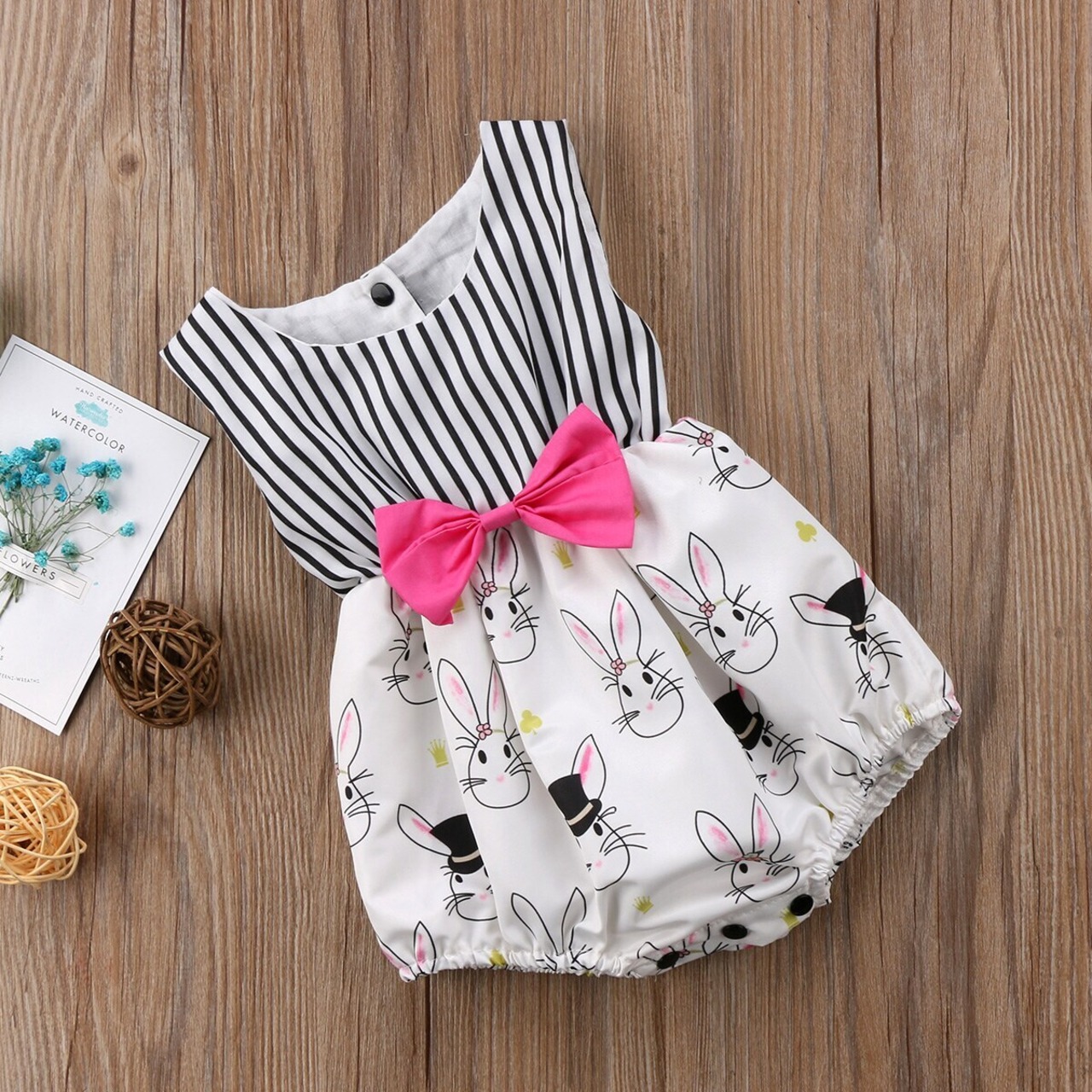新作 生まれた赤ちゃんの女の子イースターバニーストライプの服ノースリーブロンパース衣装0-24M