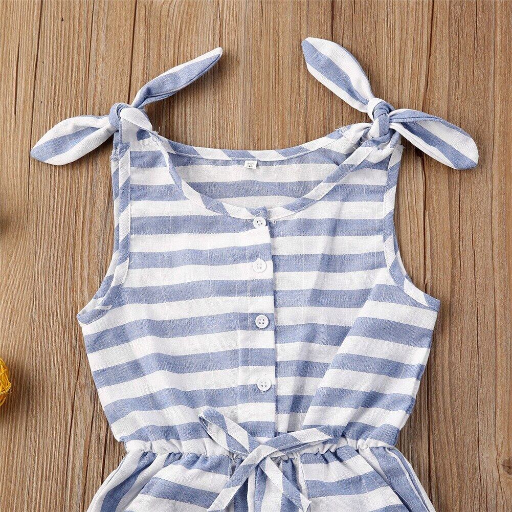 新作 幼児キッズベビーガールズ服コットンジャンプスーツノースリーブストライプスリングロンパース夏服
