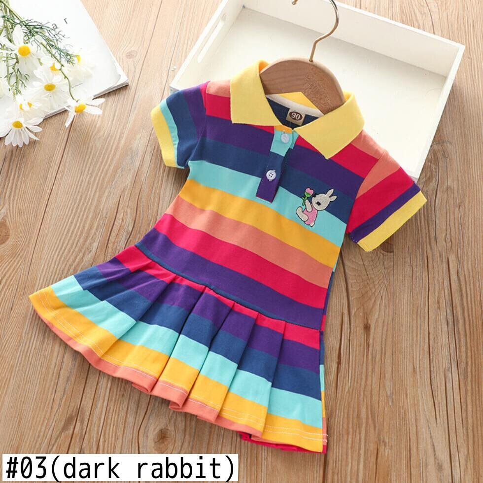 新作 夏の女の子のドレス赤ちゃんの小さなポニーの漫画の服半袖ドレスレインボードレス子供2-6歳
