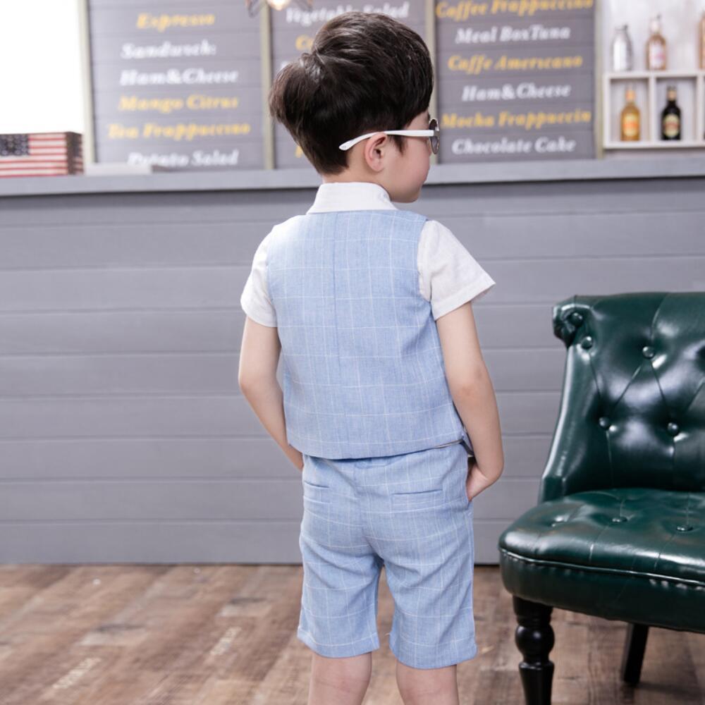 新作 4pcs夏の子供セットベストパンツマルボーイズウェディングスーツドレスキッズタキシードセット紳士少年学校の衣装